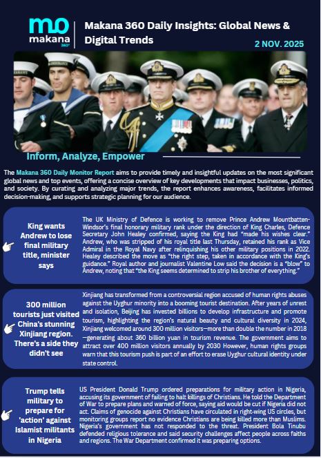U.S. President Donald Trump has directed the Department of Defense to draw up plans for potential military action in Nigeria, accusing the government of failing to stop what he called “massacres against Christians.” Trump threatened to cut aid if no action is taken, despite independent reports finding no evidence that Christians are being targeted more than Muslims. The Nigerian government has yet to respond, though President Bola Tinubu stated that Nigeria “protects religious tolerance” and that security challenges affect all citizens equally.